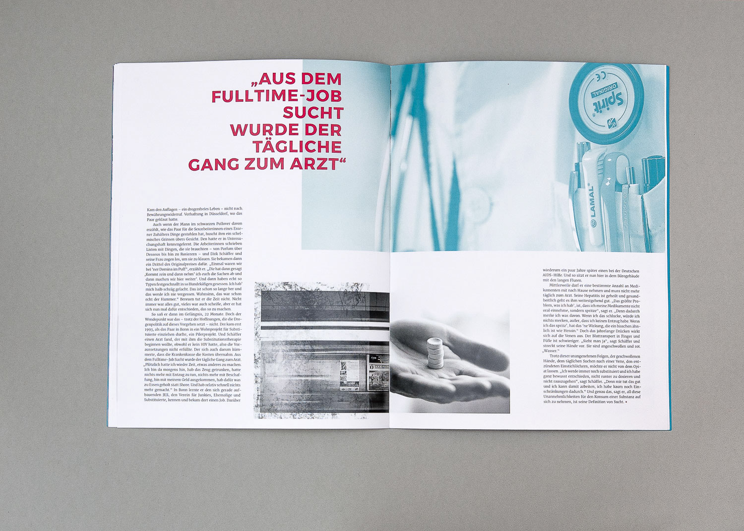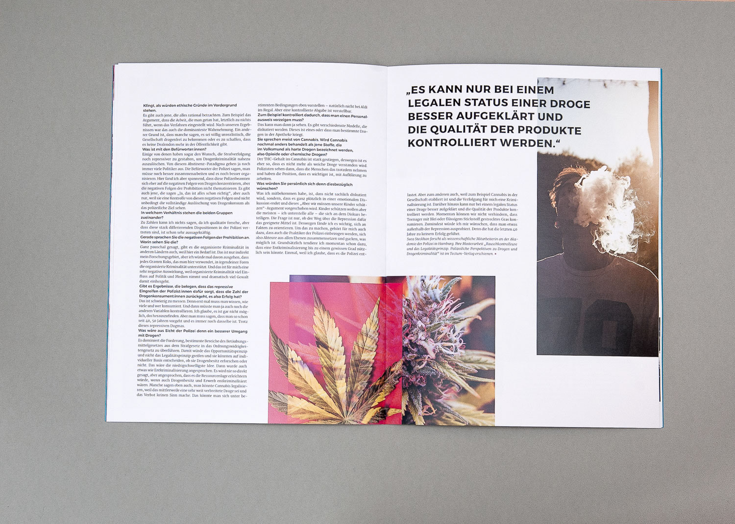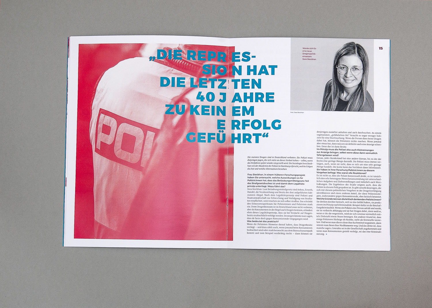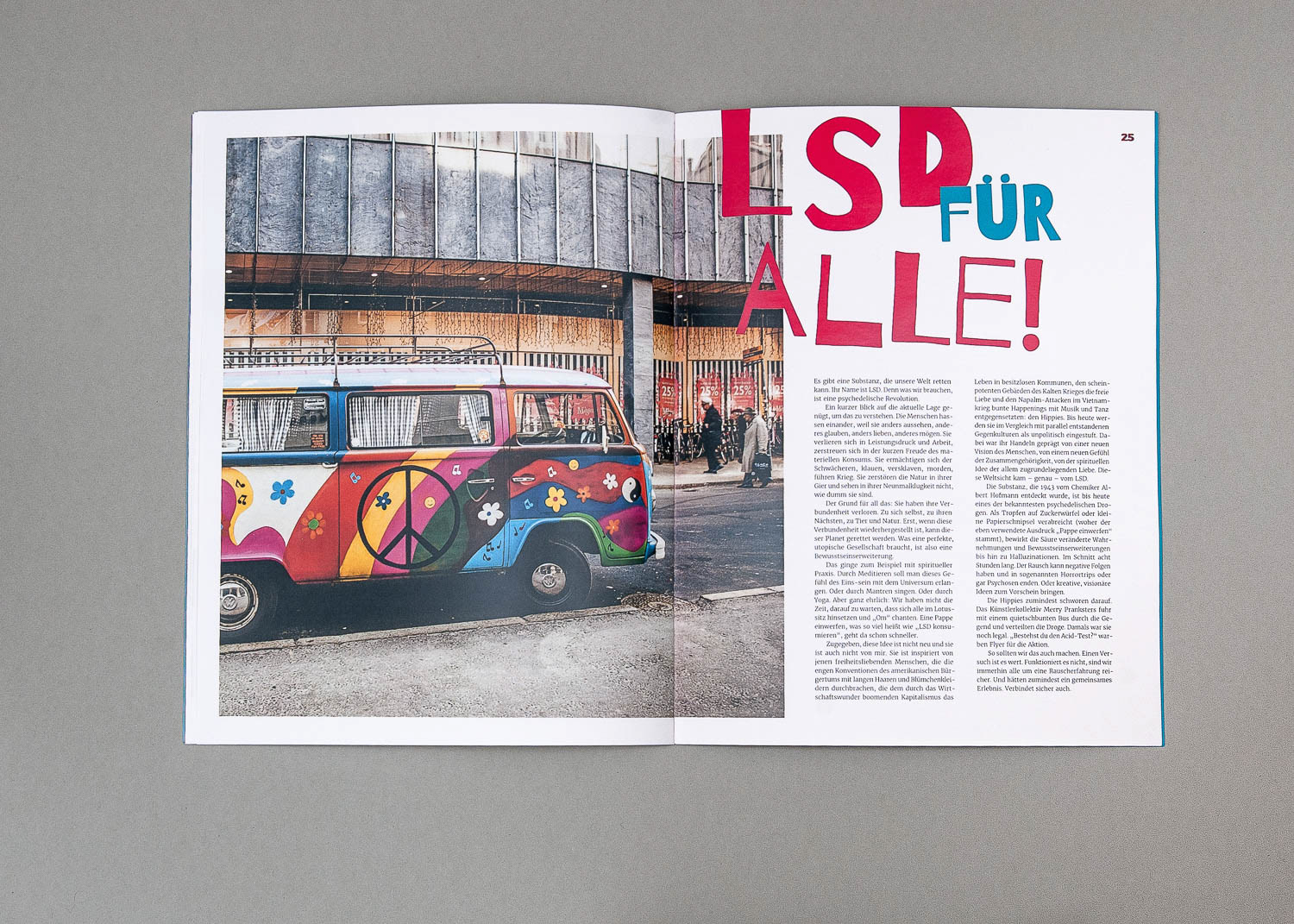 Editorial-Design für die Masterarbeit „Neues Probieren – Ein Dossier zur Akzeptanz der Substanz“ im Bereich Kulturjournalismus.