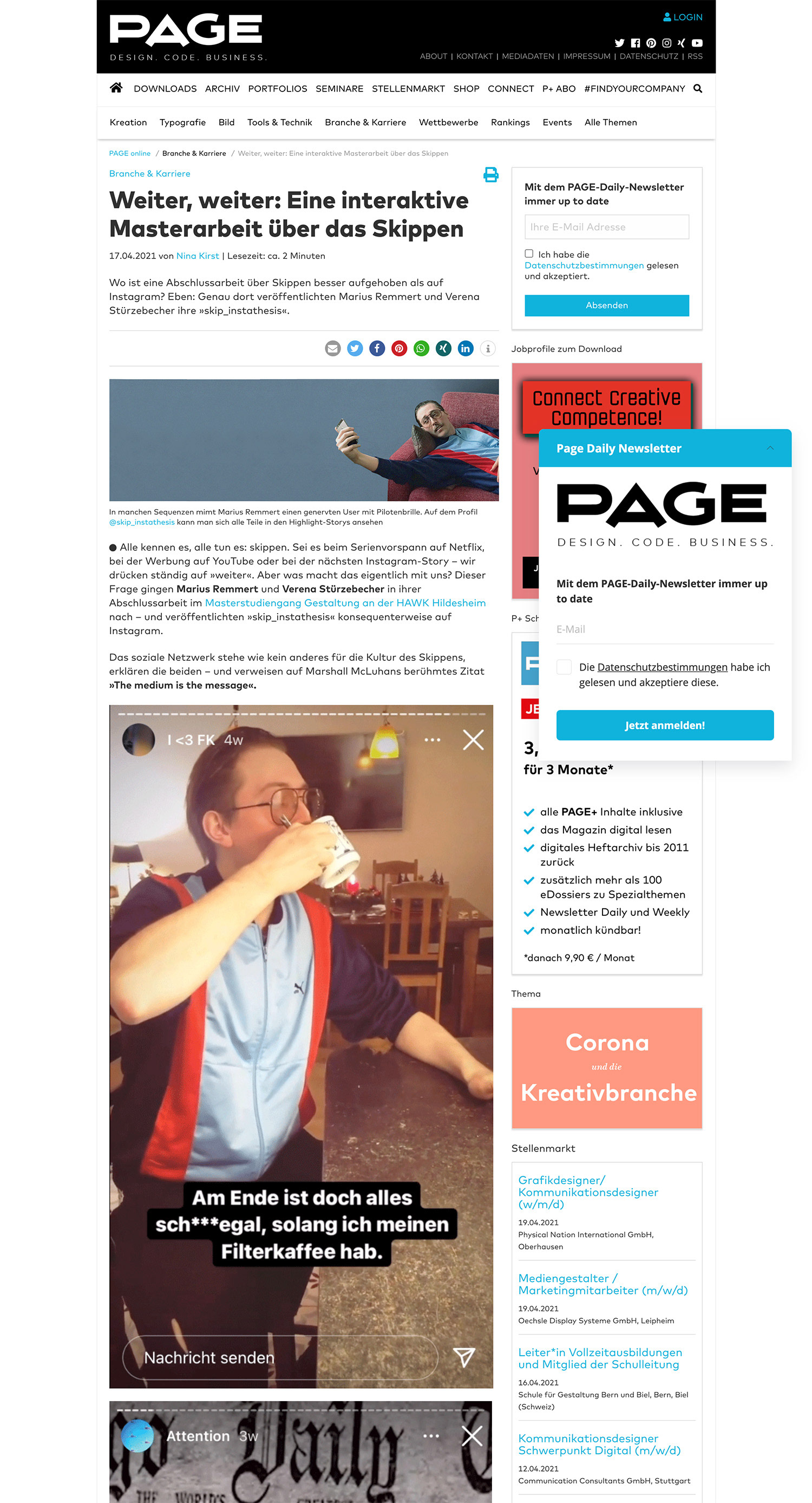 Eine wissenschaftliche Auseinandersetzung zum Thema "Skippen" für das Medium Instagram: @skip_instathesis